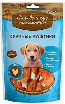Лакомство для щенков. Жевательная палочка, плотно покрытая куриным мясом, позволит вашему щенку насладиться замечательным вкусом курицы, а также «почесать» свои зубки.
