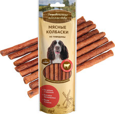 Лакомство для собак. Колбаски из свежайшей говядины легко ломаются на маленькие кусочки и подойдут для угощения собак всех пород.