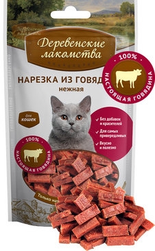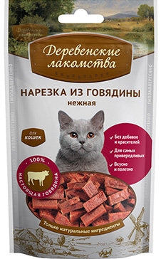 Лакомство для кошек. Свежайшее мясо говядины, которое мы используем в наших лакомствах — превосходное угощение для любимой кошки!