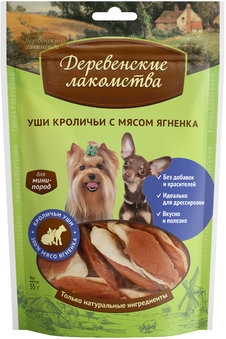 Комбинация хрустящих кроличьих ушек с нежным мясом ягненка создают уникальное лакомство, которое не только придется по вкусу любой собаке, но и заставит ее немного потрудиться.